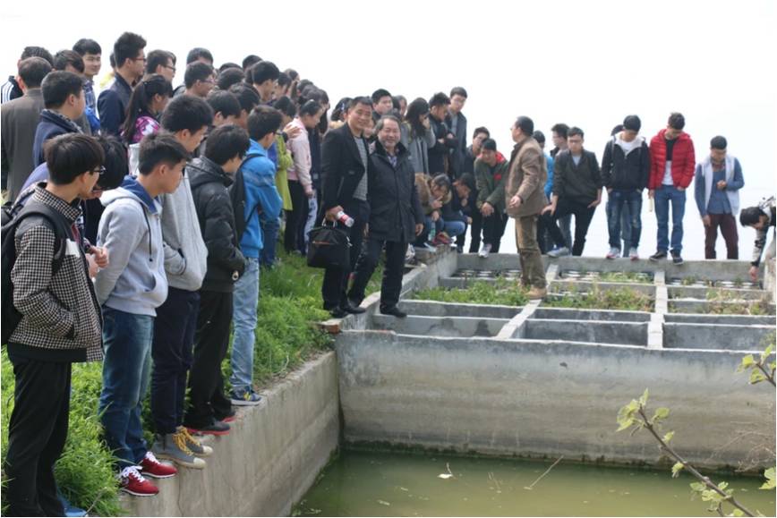 接着,梁智博老师分别从清江水生态体系修复的构思、背景、历程三个方面开始了讲座,提出了具有造血功能的生态治理模式。这种模式通过巧妙的生态设计,能够达到科学的协同共生,实现资源的合理化利用。其次,对于当遇到水体富营养化这类棘手的问题应如何解决以及如何将这些营养物质转换为资源再利用等问题,梁智博老师也进行了详细的解析。台下不时响起热烈的掌声。在梁智博老师回答了同学们提出的问题后,为了让同学们能够更加直观地了解相关知识,做到理论与实践并存,老师带领着同学们参观了我校的教学与科研基地进行参观。